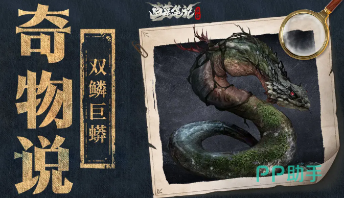 双鳞巨蟒主要栖息在西王母国,它长得像树蟒,最粗的地方和水桶一样,鳞片是双层的,非常厚实还会在光线下反射褐金色的光芒,它虽然有着庞大的身躯,但却能在树枝之间灵活移动,几乎没有任何动静,据民间传说,它的鳞片还能给人带来幻觉。