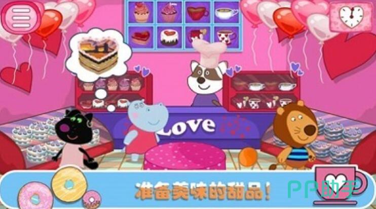 以动画IP为核心的休闲模拟游戏。玩家通过调配饮品、烘焙甜点等简单操作经营卡通咖啡馆,解锁主题装饰与角色互动事件。特色在于还原动画场景与人物对话,乔治、苏西等角色会以顾客身份登场,触发趣味剧情彩蛋。游戏操作轻量化,适合全年龄玩家体验动画世界的治愈日常。