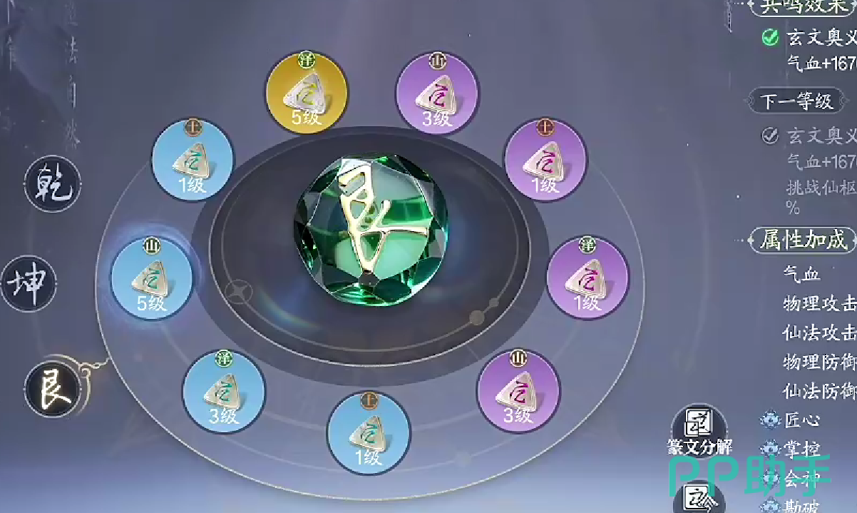在游戏当中提升道法的手段总共有三种,第一种是直接提升自身的阵灵系统,阵灵可以通过抽卡来获取,每次抽卡获取一个新阵灵时,玩家的阵列系统,都会激活一个战斗力提升单位,不同的阵灵组合,会触发不同的攻击效果提升,例如,当玩家触发了情缘效果,可以提升整体的攻击力数值,以及气血数值。