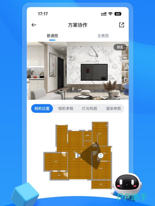 软件可以高效出图,仅需5秒的时间即可生成4K超清效果图,能一键把经典设计方案匹配到不同户型,特别方便!能按照你选的装修风格,自动给你推荐搭配好的家具,用起来超级省心,拯救手残党!推出的施工指导功能更是可以帮助业主实时监控装修进度,功能十分的全面。