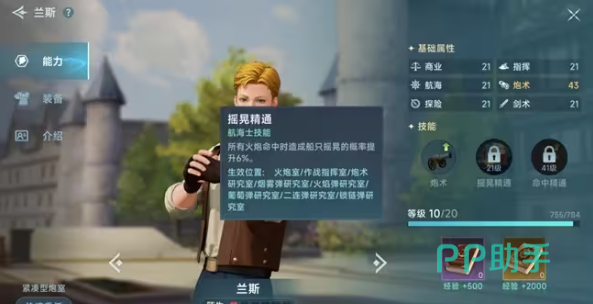 该航海士拥有3个专属技能,第一个”布设水雷”,布设水雷技能+1。技能二是”水雷强化”,他布设的水雷对敌方造成的最终伤害可以提升30,这个技能能在航行指挥室,作战指挥室,水雷研究室,以及副舰长当中均生效。