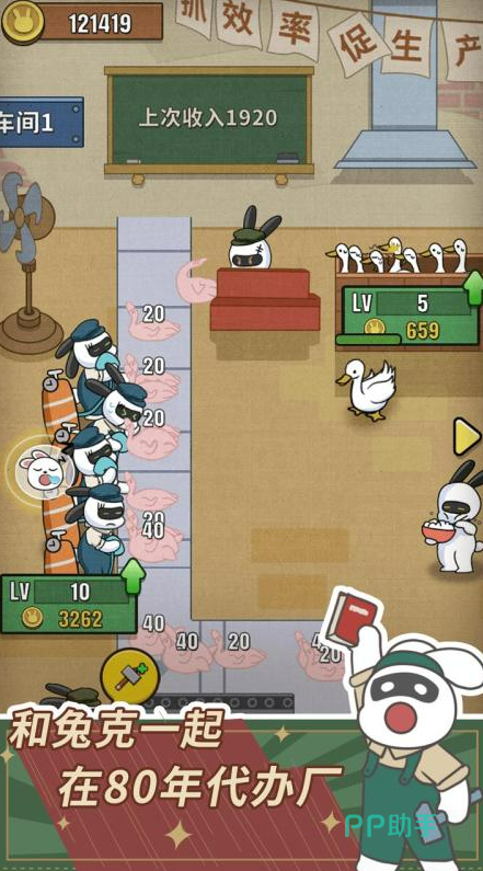 经营一座工厂,从零开始打造你的商业帝国。控制一群聪明的小兔子,通过不断优化生产线、招募员工和升级设备,逐步提升工厂的生产力。每一条生产线都有不同的任务,如何在有限的资源下做出最合适的决策?通过不断地拓展业务,你将解锁更多神秘任务和商业秘密,收获属于你的创业故事。这是一个既富有挑战又充满成就感的经营之旅。