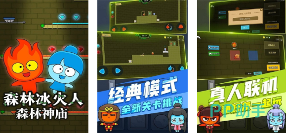 这款拥有森系神庙背景的冰火人游戏很有创意,真人联机一起畅玩的经典模式趣味性十足,极快的运行速度和毫不卡顿的画面也是亮点,神庙环境具备森系风格让人心情得到放松,经典的红蓝小人形象看上去也是无比精致,联机畅玩进行闯关的游戏理念是冰火人游戏精髓,与好友一起共同闯关神庙地图吧。