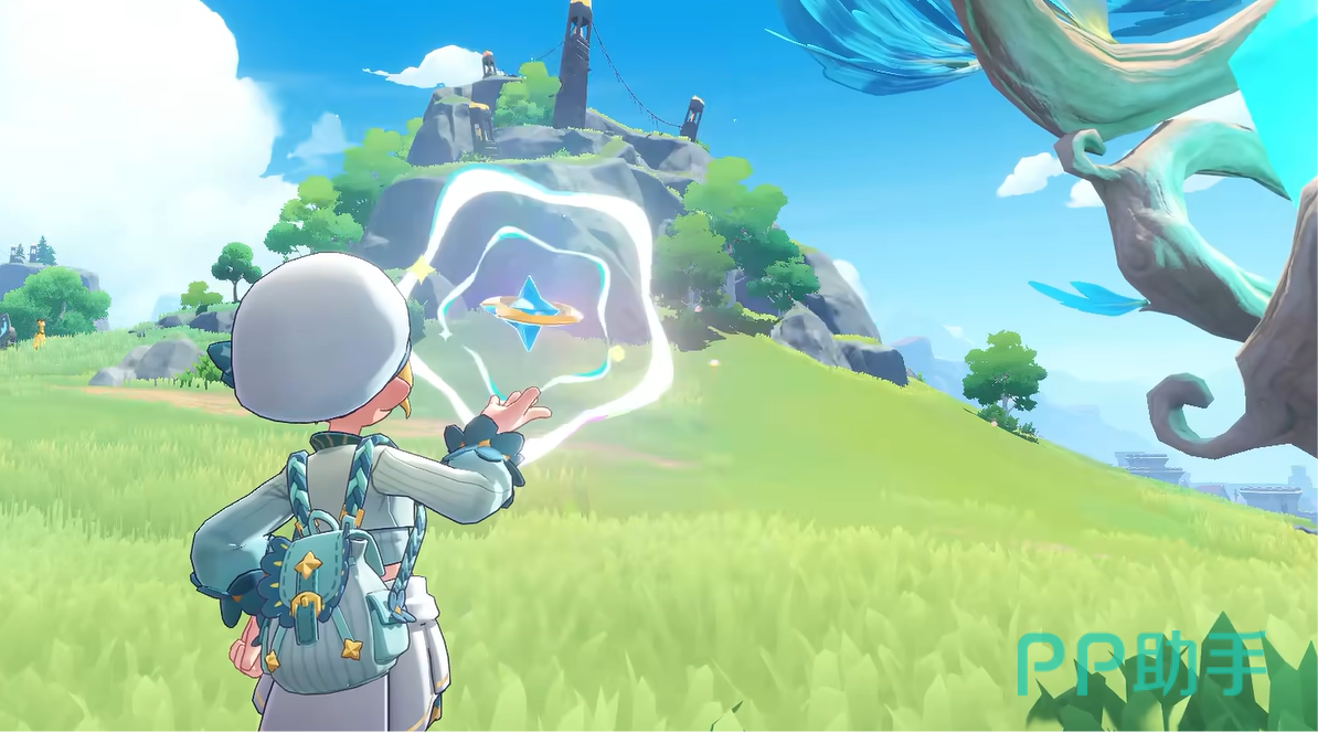如果大家想要捕捉这只精灵的话,那就可以直接传送到望风半岛的魔力之源。到了以后视角可以直接转到背面,到了下面之后,就会发现一只缇塔以及它的进化形。大家看到之后只需要朝他丢精灵球就行,之后就会开始战斗。