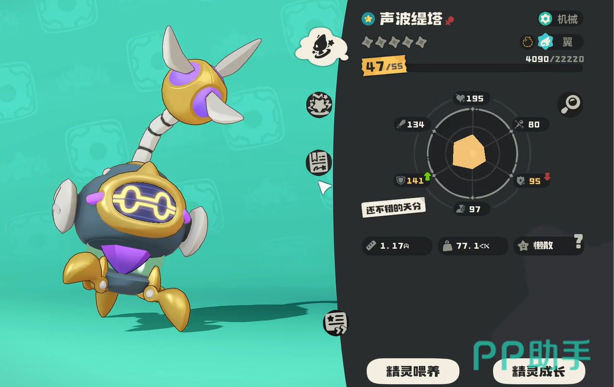 大家将缇塔捉到之后,就可以进行培养了。通俗来讲只需要培养至40级,就可以进化成更高等级的存在。也就是大家所喜欢的声波提塔,这只精灵的话天赋出众,而且属于机械属性,并来自于翼族,生命值以及防御力比较高,但是攻击力也不弱,所以战斗能力还行。