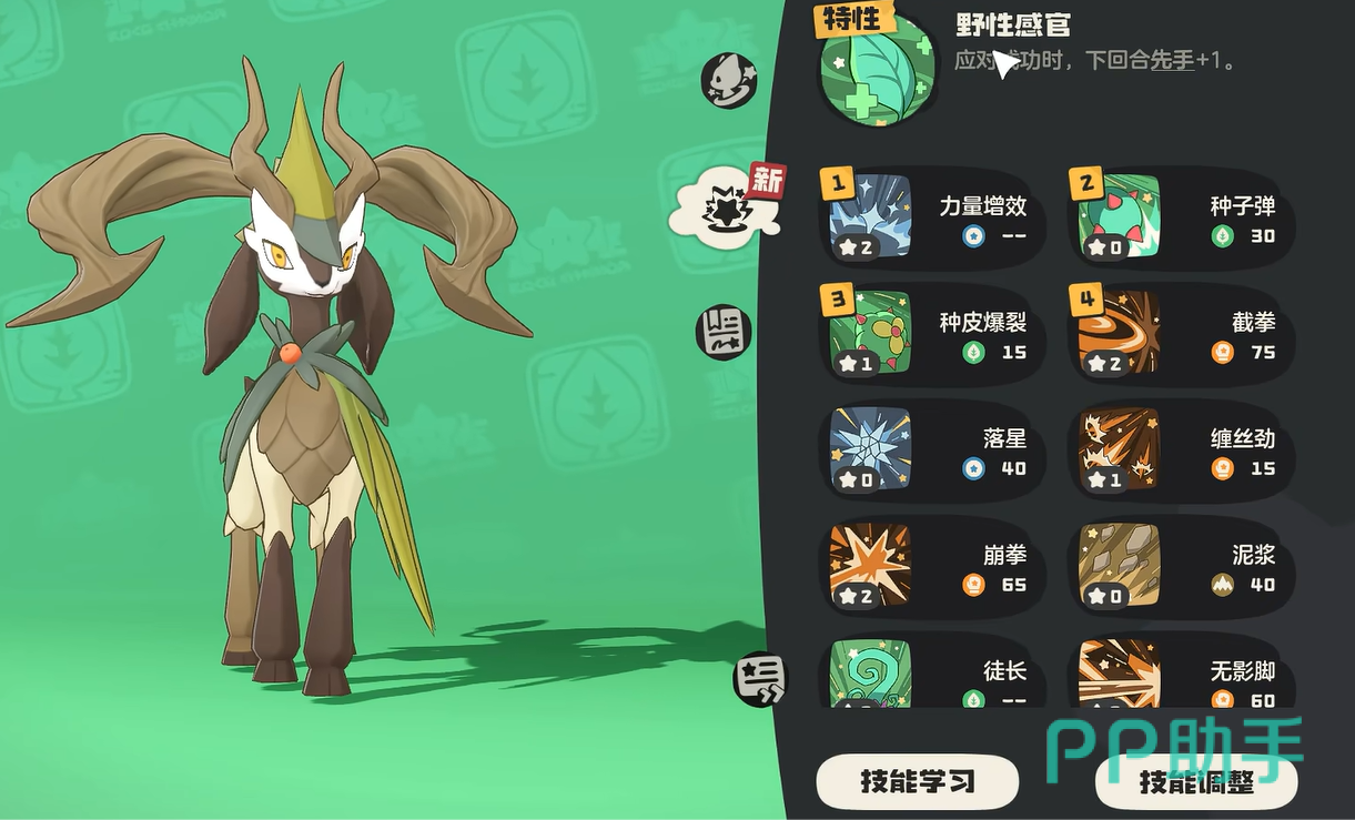 当大家将这只精灵喂养至40级之后,那么就可以进阶成为针叶巡林,这是一只有如山羊一般雄壮的精灵。并且生命值也很高,特性叫做野性感官。当你应对成功时,就可以获得一次的先手机会。作为一支力量型精灵,他的技能也偏向于增加力量并造成草系伤害。