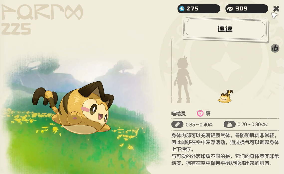 逗逗其实是犹如猫咪一般小巧可爱的精灵,并且全身鼓鼓的,就像一只气球一般漂浮起来。因为它的骨骼和肌肉都相当轻盈,就算是一只陆地生物,,但是它也可以不断漂浮。大家不要被它萌趣的外表所蒙骗,其实它的肌肉力量非常扎实。
