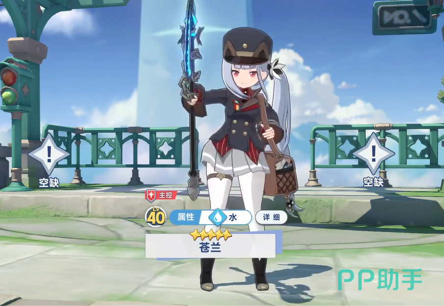 第一个推荐大家用的是苍兰,作为一个主打双输出的水属性角色,她不仅有着可盐可甜的美少女外表,反差感很强烈的是她拿着一柄硕大的斧头,并且能够造成大范围的水属性挥砍伤害,所以她的爆发输出特别高。