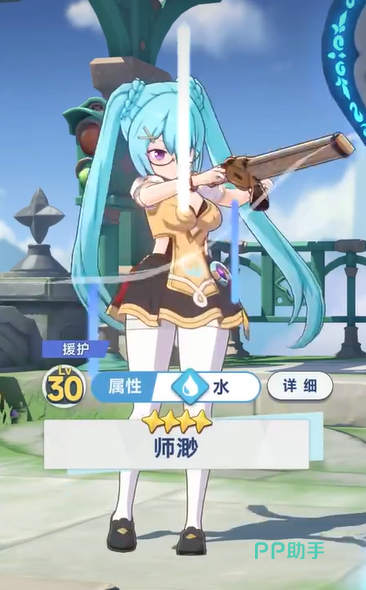 第二个角色可以使用师渺,这是一个带着独眼眼罩的双马尾女孩。虽然是一个援护角色,但是拿着长枪,用完技能后就能对敌人造成远程伤害,可以轻松打好掩护,让队伍里的主角能够安心输出。技能方面可以使用远程水箭,打到人的话还能造成击退效果。