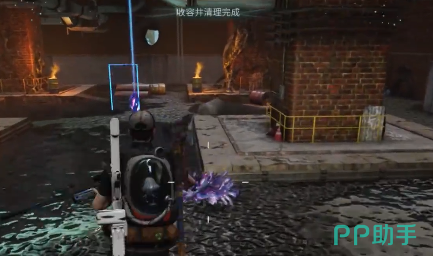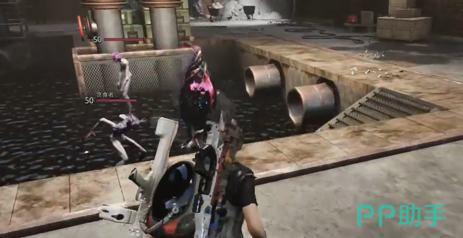 进入西塔收容井后,沿着右侧的路径走,最先映入眼帘的是几只趴在地上的怪物,不过它们并不难对付,大家可以忽略它们。继续往前走,你会在一堆柴火和铁桶附近找到一扇门,门旁有楼梯通向上层,这里就是第一阶段的关键,清理掉三个孢囊,门就会自动打开,继续前进。