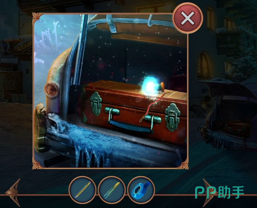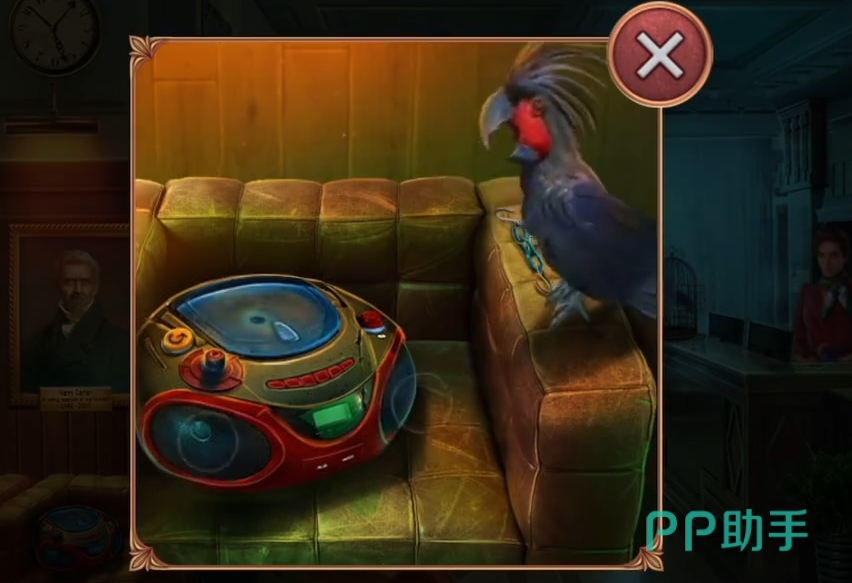 我们用热咖啡来进行解冻。这样便会露出后车厢的钥匙孔,我们利用获取到的钥匙打开车厢门,在拿到物品后将物品箱给拿出来,然后交给刚刚的助理。之后玩家们便可以进入到旅馆的内部。一开始先点击左边的人物画像,从画像的下方可以找到一个按铃部件。接下来点击CD机,发现有所损坏。在旁边有一只鹦鹉,鹦鹉的左边有关于它自己的说明。接着我们点击柜台,然后将刚刚的按铃部件给安上去。