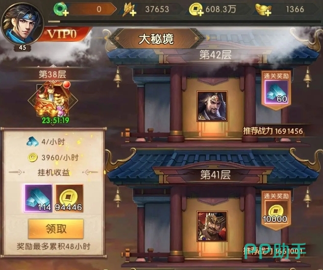 扫荡功能则是大秘境玩法中的一个贴心设计,当玩家通关爬塔达到 15层后,便可解锁扫荡功能,这一功能允许玩家对已通关的层数进行扫荡,轻松获取一定的奖励,无需再次重复繁琐的战斗过程,而且每日首次扫荡是免费的,这无疑为玩家提供了更多的福利,值得注意的是随着层数的升高,扫荡所获得的奖励也会愈发丰富,这对于追求快速提升实力的玩家来说,是一个不可错过的机会,他们可以通过合理利用扫荡功能,积累大量的资源,为自己的武将打造更强力的武器和防具。