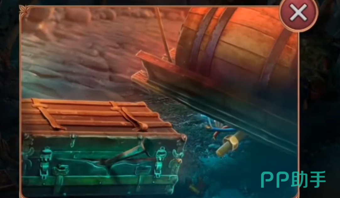 这时会开启一个小游戏,我们的点击顺序可以从中上开始,然后是左下,左上,下,右上,右下,完成后进入下一个场景大桥怪树中,对着地图上的木桶使用锤子能得到镊子、煤炭和硫磺。