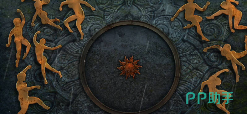 左边台子上有石头碎片,放入右边的柱子能完成拼图,右边石柱下面有个铁杆,可将被堵住的放水口给打开,然后拿到木桶,使用木桶装水;将桶里的水倒入火盆,获得旋钮,旋钮安入柱子里获得方形钥匙,可解锁左边的台子,之后拿到锤柄。