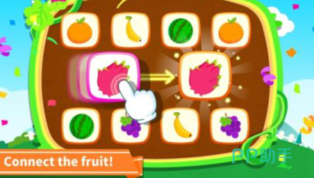 宝宝学水果游戏中,收纳了生活中常见的众多水果,为宝宝呈现丰富多样的水果世界,在认知环节每个水果不仅配有高清可爱的图片,展示真实外观,还同步标准读音,宝宝点击水果,即可听到清晰的名称发音,将水果的形状与读音紧密相连,这种音形结合的方式,符合宝宝认知规律,帮助他们轻松记忆水果名称。