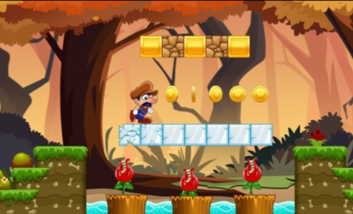 马里奥不只有常规的场景,在超级马里奥这个游戏里,会设定一个丛林,在这个像素风格搭建的丛林里,玩家要控制角色不断向前,相对来说操控是比较简单的,只需要控制角色前后移动或者跳跃即可,每一个场景中还有简单的小怪,可以通过跳跃的方式避开他们,也可以直接跳到这些怪物的头上,这样就能继续前进。