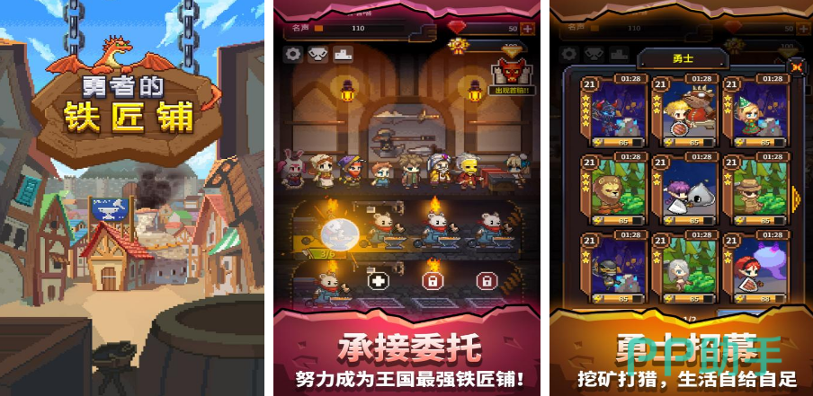这款手游融合了冒险战斗与打铁经营等多种趣味元素,让玩家化身一个王国的铁匠,为所有的士兵打造兵器消灭恶龙。玩家可以为这些勇士们打造进攻的长剑和弯刀每一种装备都有自身的战斗属性,在游戏副本和资源关卡中,玩家还可以招募很多勇者去打怪升级,收集大量的打铁材料。玩家获取到的珍稀资源并非无限,需要合理的规划使用,让自己生产效率大大提升。