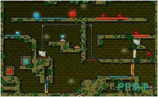 以双角色协作为核心,在轻松氛围中构建出紧凑的动作逻辑。游戏通过元素属性的对立设定,使每一个关卡都形成独立的解谜结构。冰与火在地图上各自承担专属路径,水池与岩浆不再是单纯的障碍,而成为推动配合的核心机制。角色移动之间节奏紧密,跳跃、停顿、触发机关的时机把控需要高度默契。地形设计层次丰富,斜坡、升降台、风力机关的细节处理增强了空间感与动态变化。