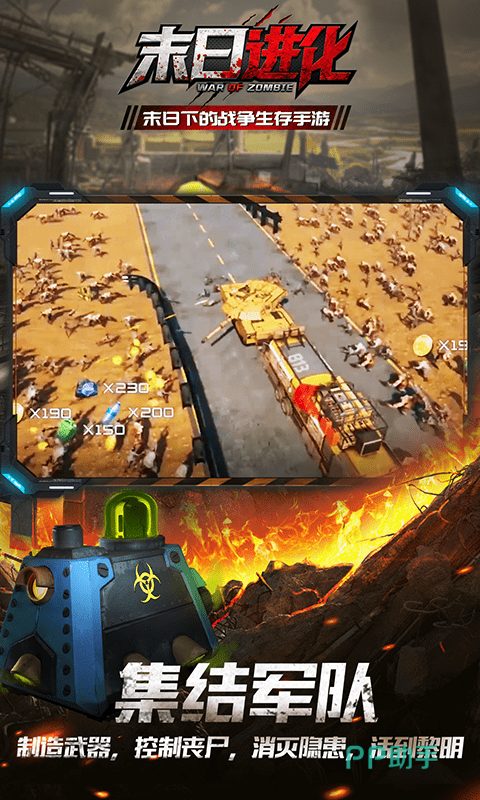 第三个我们的玩家看到的就是这款《末日进化-丧尸危机》手游了,游戏的背景给我们设定在了一个末日废土的世界之中,要做的事情就是去抵抗僵尸的入侵,并且建造好我们人类自己的家园,游戏中要学会运用策略来击败那些僵尸,而且你们还必须提升自己士兵的等级,让它们的战力更强,这是一定要做到的。
