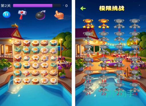 这款具有挑战性的消除游戏,也能带给大家很多的乐趣,无论你看到了可爱的小动物,或者是各种颜色的糖果,都需要通过将三个一样的,或更多的图案进行匹配以后,完成消除。游戏的主要特色就是随着关卡任务不断推进,难度也会有所增加,所以你在玩的时候会发现,难度越来越大,一定要开动脑筋,才有机会完成挑战以及任务,能获得成就感。