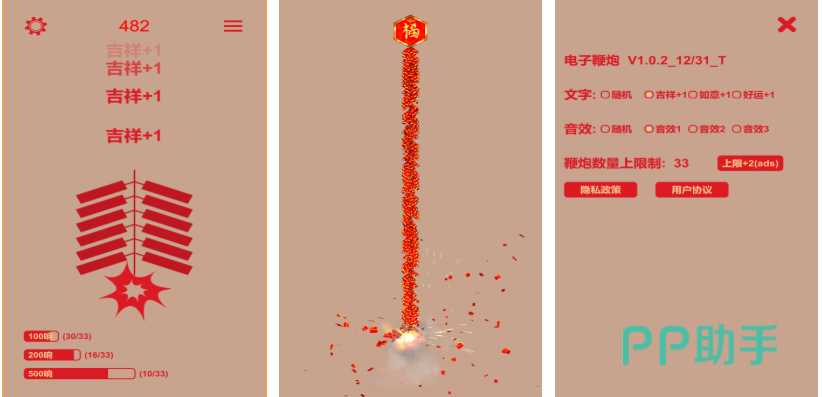 电子鞭炮这款模拟放鞭炮的游戏作品毫无丝毫危险,真实环绕的鞭炮音效和烟雾效果辨识度极高,一长串的鞭炮燃放殆尽的过程也很热闹,你甚至能够自定义鞭炮的数量以及音量大小,想看烟花又不敢亲自燃放的小伙伴可以试试,超级舒适且喜庆的气氛展现会给人过年的感觉,这款电子鞭炮模拟类手游作品可玩性非常高。