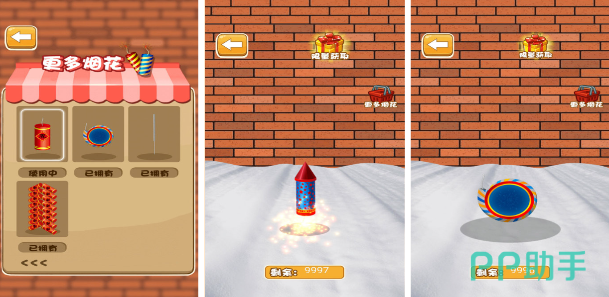 甩鞭炮是款用第一视角燃放鞭炮的精品模拟作品,你的任务就是点触引线快速燃放各种烟花爆竹,礼花、炮仗等经典鞭炮应有尽有,大红色的背景衬托出十分喜庆的气氛,操作方面无难度但带来的惊喜体验别具一格,不受限制的燃放烟花游戏理念令人百玩不腻,你也试着在虚拟世界点燃各种烟花鞭炮吧。