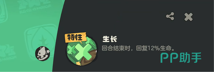 特性方面的话叫做生长,当一个回合结束之后,就可以让他恢复12%的生命值。也就是在进行车轮战时,它所能够发挥的优势就更大了。例如在命运对决模式中,就给先行上场。不断的消耗对方的血量,自己处于不败之地。