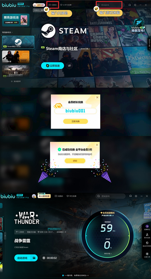 体验这款游戏的朋友别忘记作为一个大型的网络游戏,对于网络就会有一个较高的要求。因此建议大家一定要选择加速器。现在新用户在点击上链接之后就能获取一个新手礼包,时间是24小时。这并不是最终的福利,玩家还可以在加速器的页面选择复制【biubiu001】可以获取一个3天的免费加速时长。如果两者加在一起,一共就可以免费96小时。