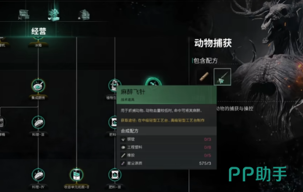 要开启动物养殖,首先需要解锁游戏中的畜牧养殖系统,需要玩家完成一定的主线任务或达到特定等级,以获取相应的科技解锁权限,解锁后玩家才能进一步开展后续的养殖操作,制作麻醉飞针是抓捕动物的关键步骤,玩家需要前往轻工具台,消耗四阶材料来制作,麻醉飞针用于将动物麻醉,以便安全地进行抓捕,不同动物所需的麻醉次数可能有所不同。
