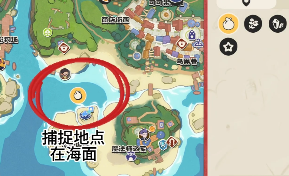 关于双灯鱼的捕捉位置,小编在图片中就已经给大家标注出来了,大家根据图片中的标记直接前往这个地点,即可获得双灯鱼的果实,获取之后直接前往海边进行孵化即可。双灯鱼的主属性为水,副属性为电,血条还是比较厚的,不算太脆皮,并且捕捉的要求也比较低,因此其实是一个比较适合在游戏前期使用的精灵,小伙伴们手上如果有多余的资源,可以酌情培养。