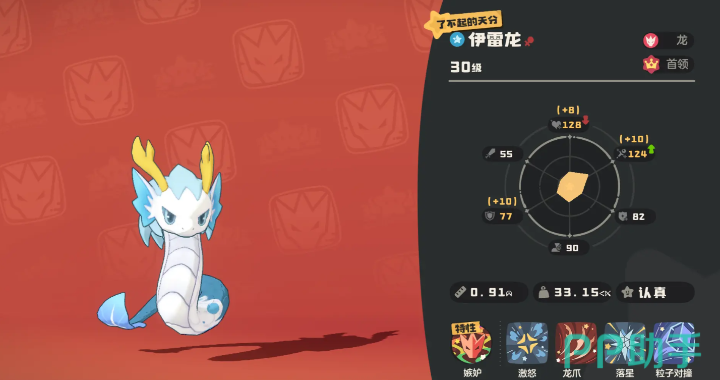 伊雷龙在游戏当中,具备有魔法攻击属性以及物理攻击属性,但是整体的输出能力偏向于物理输出,在逐渐成长之后,魔法攻击属性才会增加,满级后速度数值为160点,抢先出手的概率非常高,在游戏内,可以抢占回合先机,虽然伊雷龙防御数值比较低,但是可以搭配,拥有护盾技能的辅助角色,来弥补血量不足的短板。