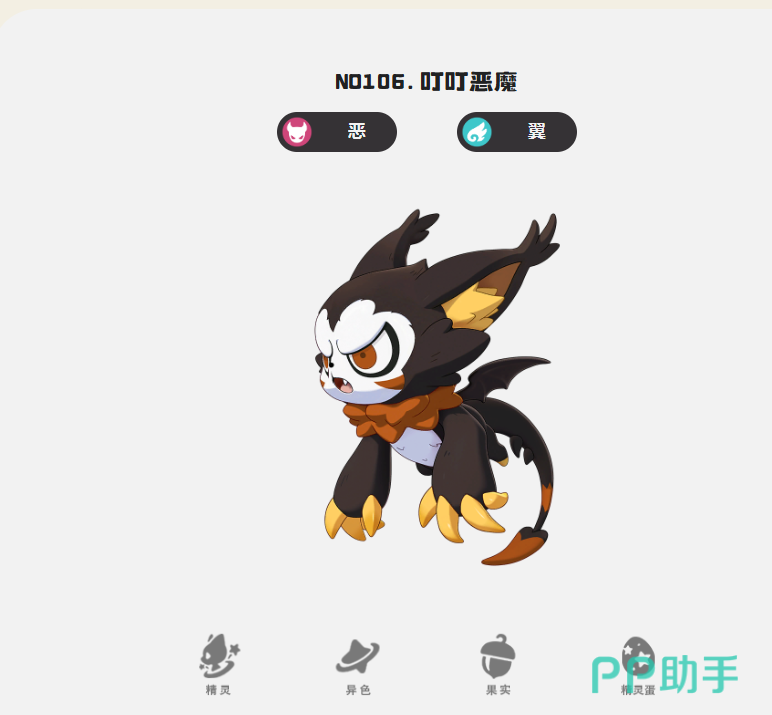 作为一款恶系的精灵,它的种族值也是非常不错的,需要大家进化,才会成为叮叮恶魔,原始的形象叫做恶魔叮,一共有486点,拥有新手攻击的能力可以来造成100%的吸血效果,在进化链上面拥有两种不同的形态。