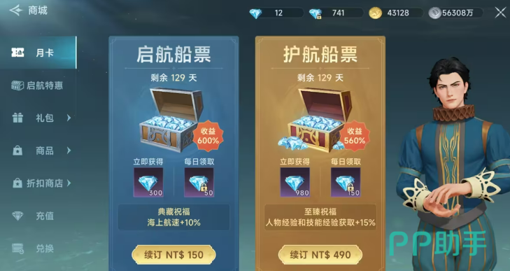 首先,当你创建角色进入游戏后,你会发现这游戏的氪金元素挺多的。不是所有的氪金都让你觉得“被逼”。其实,游戏内有几个值得投资的项目,比如大小月卡。你可以选择性地充值购买,每天都会有钻石收入,还有航速和经验的加成。尤其是如果你决定走一条稳定的进步路线,月卡对于你来说,真是非常值得的。