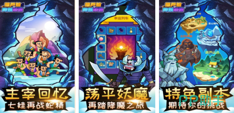 葫芦娃大作战有浓厚的国风设定,经典的葫芦娃角色和大量的神话人物,也都会出现在这个游戏里,可以操控这些角色,使用各自不同的技能,通过卡牌、棋盘和塔防对战,不断攻击坐祸人间的妖兽,肉鸽设定也能让游戏增加很多随机性,喜欢葫芦娃的可以进入到这个趣味的神话世界,不断降妖除魔,智斗妖怪。