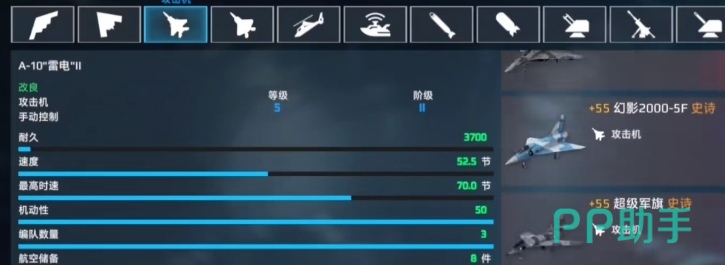 还有一个光辉的攻击机也非常不错,飞行速度是非常突出的,可以来快速的穿越敌方的防线,攻击后方的重要目标,快速的打乱对方的部署,并且还可以选择空对空导弹以及空对低导弹以及机炮等,大家可以根据自己攻击的目标来合理的进行选择,它的适应性非常的强悍。