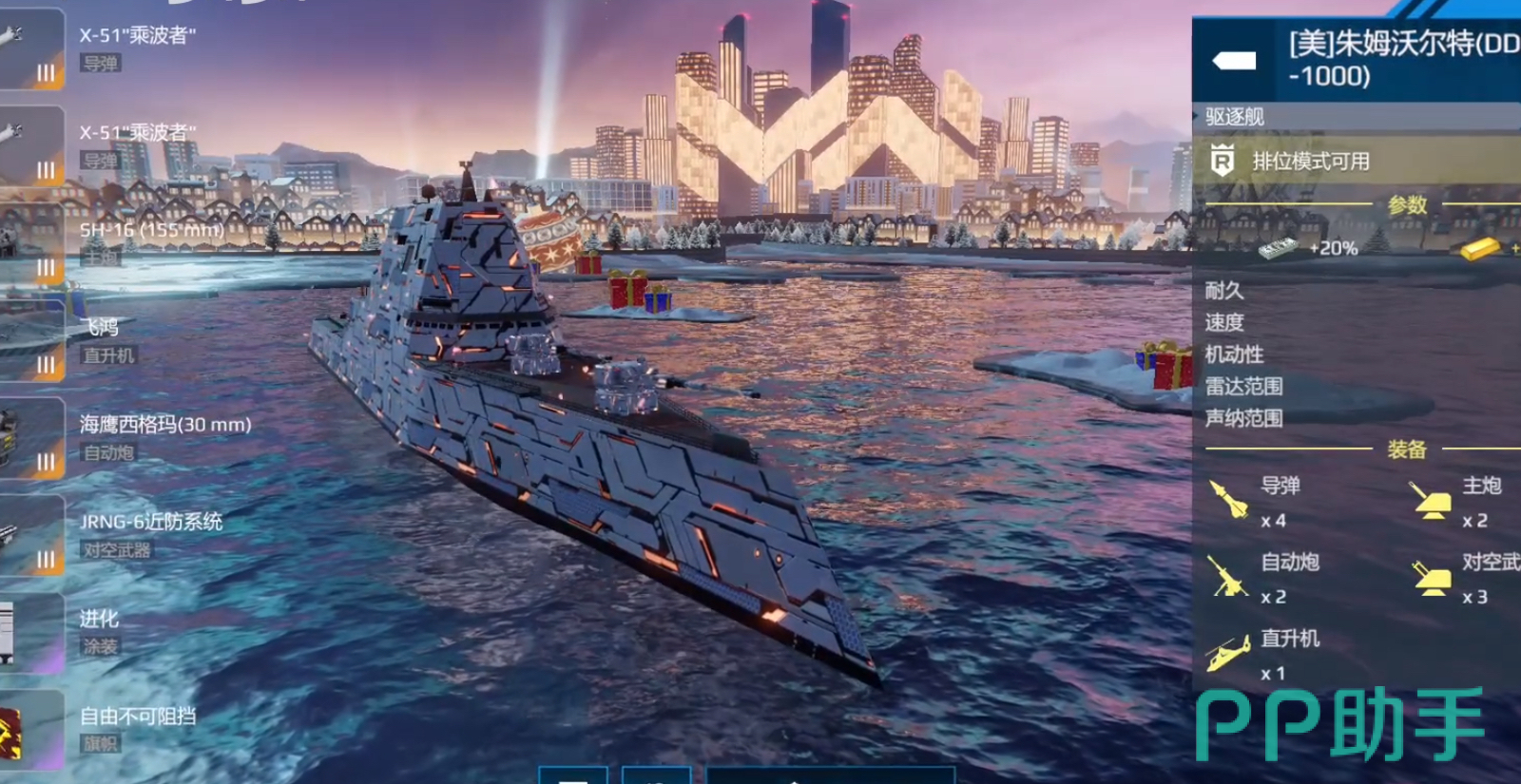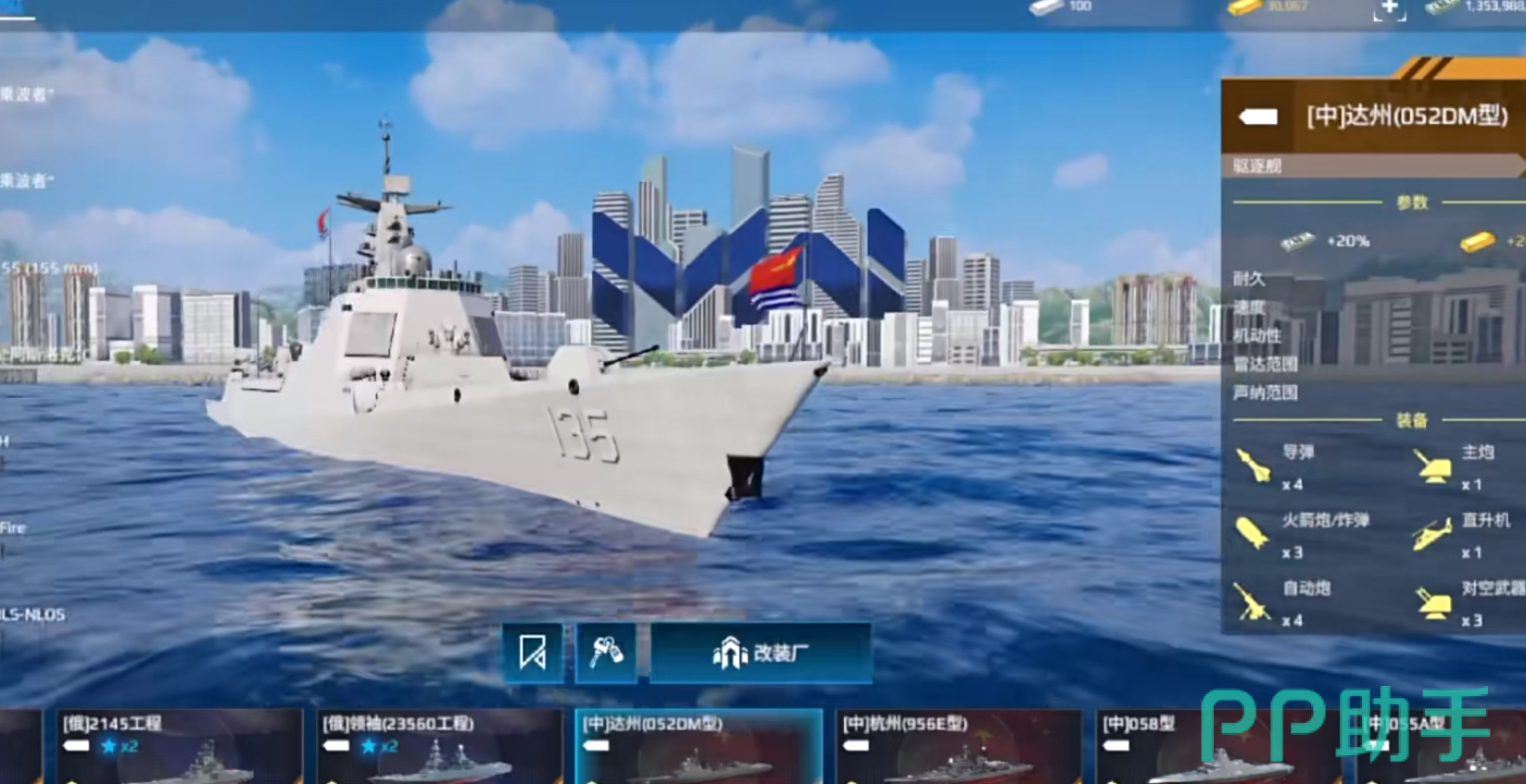 第九艘052DM达州,豪华的火力配置系统,直逼30万的单轮强制伤害值,并且在防空和反潜能力上都非常不错,全面型战舰,值得入手。