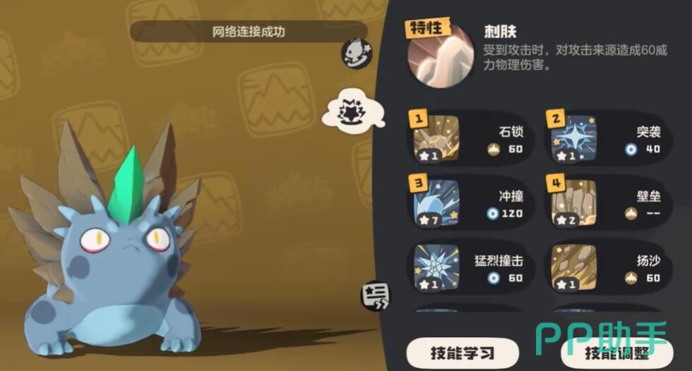 该精灵可通过进化石蜥获得,养成后在山脉、洞穴等场景表现突出,尤其克制火、冰属性敌人。其实他的玩法也主要围绕特性,刺肤特性与技能叠加机制成为非常独特的流派存在。特性触发后,每次受击反弹60点固定伤害,配合能量守恒减伤90%可大幅降低受伤压力,尤其针对高攻低血精灵形成压制。输出端依赖能量刃、剁地前者每命中一次提升30点威力,后者造成基础物理伤害。战斗时需优先叠加能量刃层数,中后期伤害显著提升,可以说是越打越强。