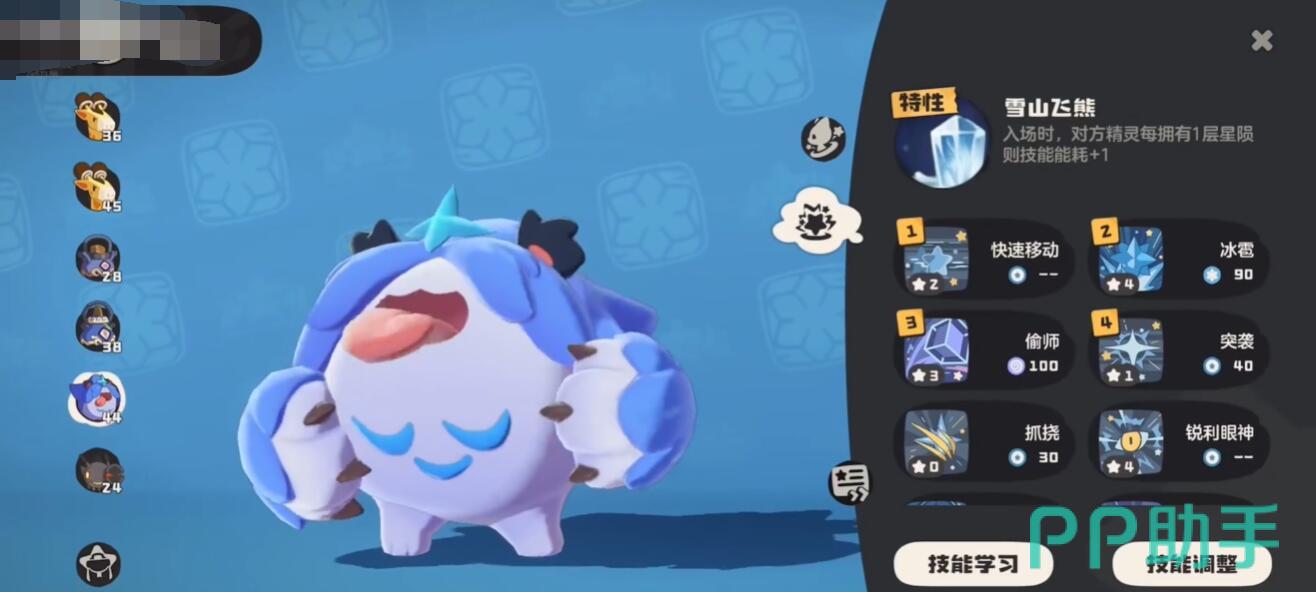 月牙雪熊的雪山飞熊特性使其在敌方携带星陨层数时,每层增加其技能1点能耗,显著干扰对手节奏。战斗中需搭配星陨叠加型队友像是拥有星河扭曲等技能的精灵,或自身携带空间压迫等赋予星陨的技能。特性触发后,敌方高能耗技能将被迫延迟释放。此外其魔攻种族值130、物攻140,可灵活选择物理或魔法输出路线。