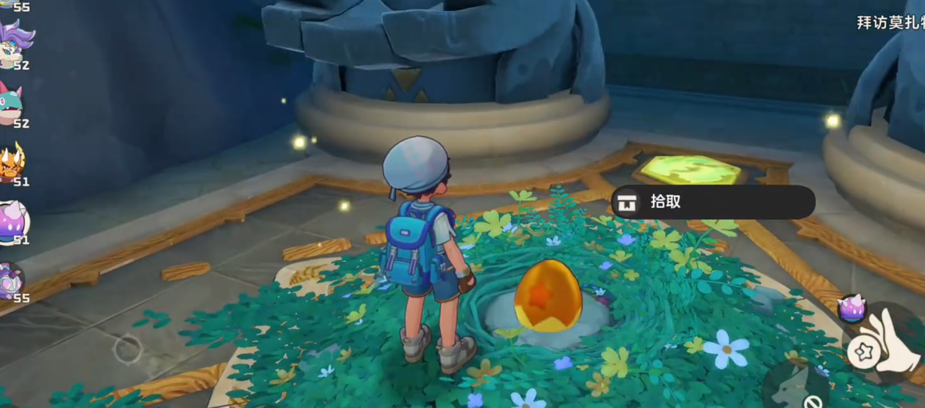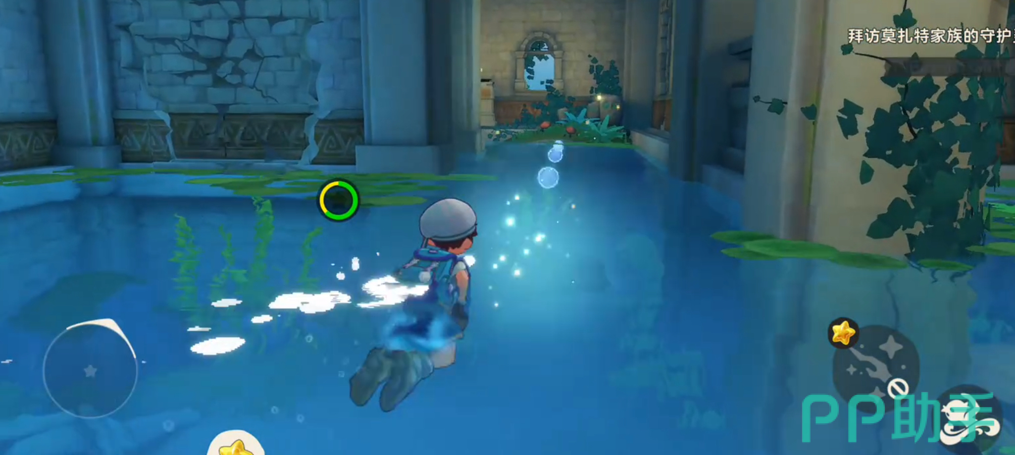 继续往前走我们会发现右手边有游戏币,顺着游戏币我们来到一处平台。平台左边的墙可以用精灵打开,打开之后会出现一个空间,里面有个宝箱,打开之后会有奖励。然后我们原路返回到捡游戏币的位置,向右边游到绿色藤蔓的位置爬上去,然后一直往前走,我们会看到一个华丽宝箱,打开之后会获得奖励。之后在出口处拿上星光狮的蛋我们就完成探索,可以出去了。