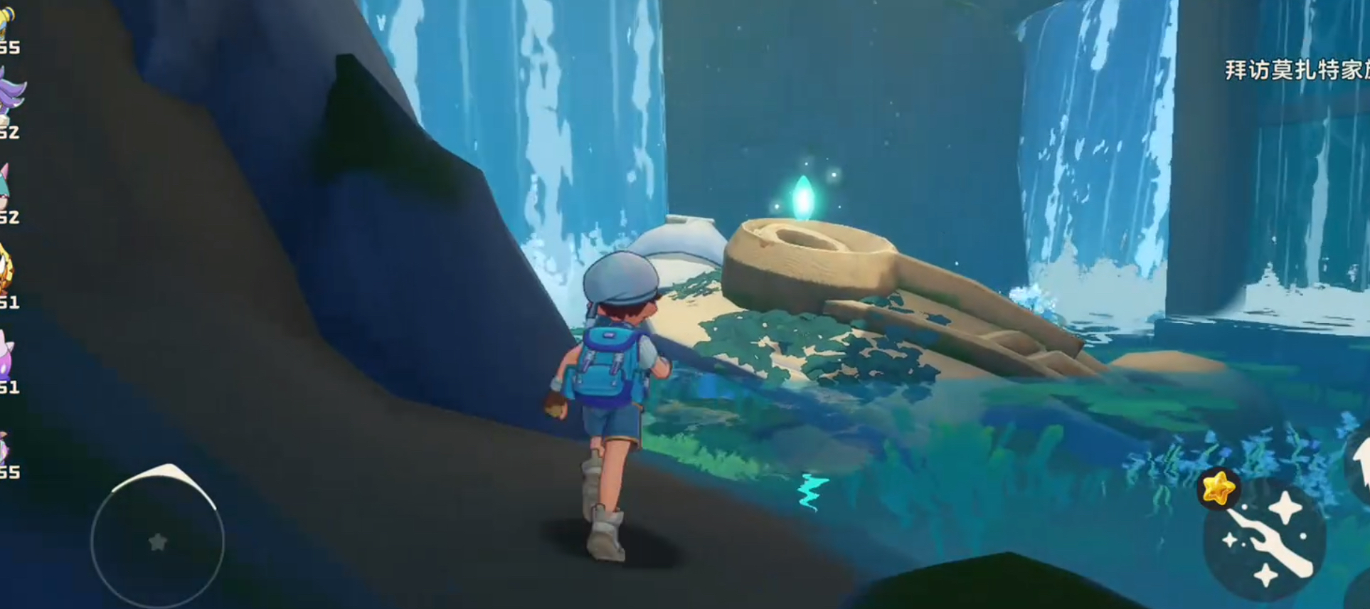 进入秘境之后,我们一直往前走会发现前面道路断裂,没办法前进。然后我们就来到墙边,根据提示顺着墙上绿色的藤蔓慢慢爬过去。爬过去之后继续往前走,然后来到一个洞口,我们要找的第一个眠枭之星就在下方。同样是一个断崖,我们可以顺着右边的斜坡滑下去,下去之后就可以拿到眠枭之星。