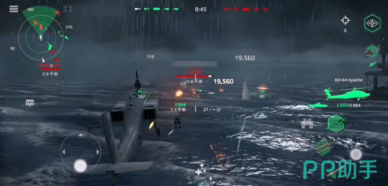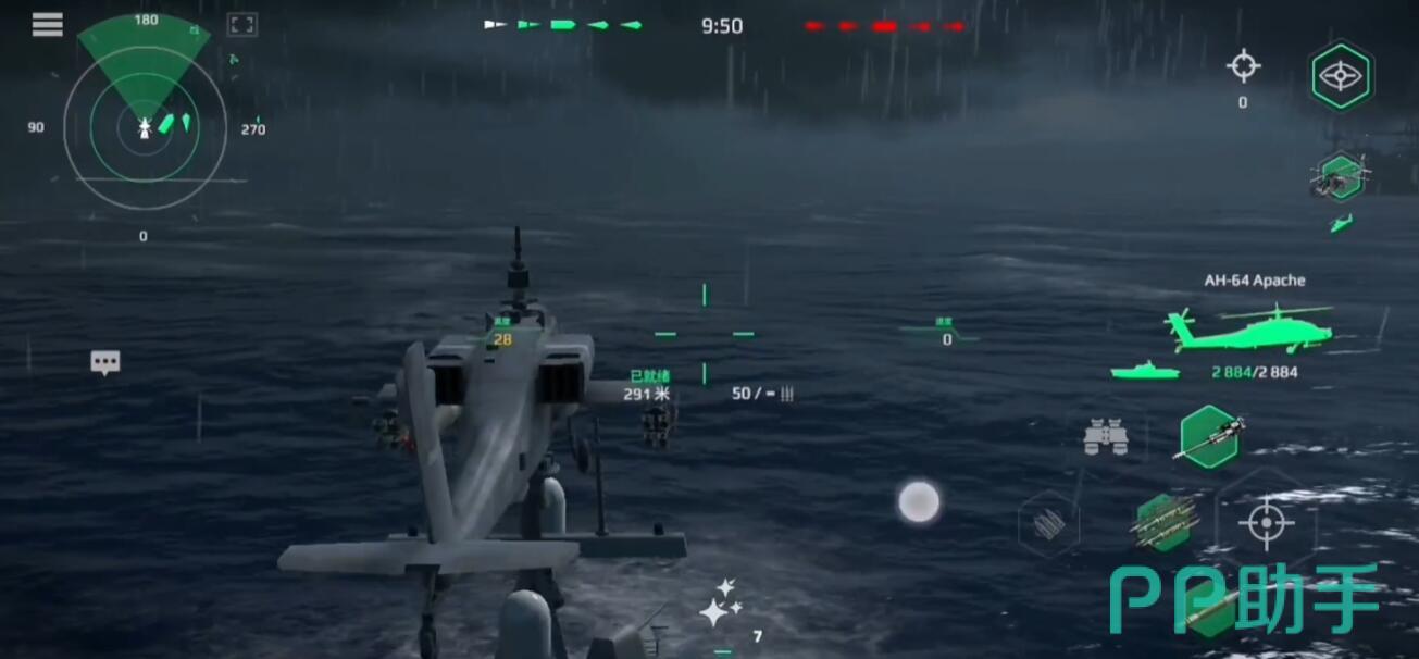 火力型直升机需与舰船主攻方向投入资源:以阿帕奇为例地狱火导弹单发伤害达12,000,适合针对驱逐舰或残血航母。战斗中,直升机应依托舰船防空圈活动,先由舰炮或导弹削弱敌方护甲,再切入战场收割。面对高防空目标时,可掠海突袭贴海飞行避开雷达锁定,突进至目标侧翼发射火箭弹。