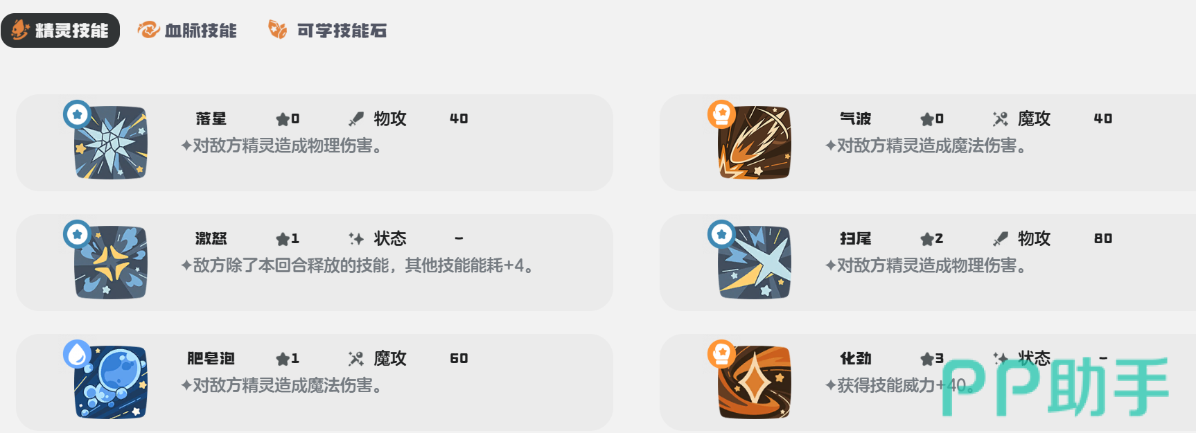 技能搭配的好与坏对于水滴蛇的战斗力是至关重要的,水滴蛇的技能分为精灵技能和血脉技能,血脉技能就是水滴蛇自带的技能,这些技能不用选,战斗时血脉技能也能触发,需要我们选择的是它的精灵技能,精灵技能一共有29个,需要从中选择出最能发挥它战斗力的技能才行。