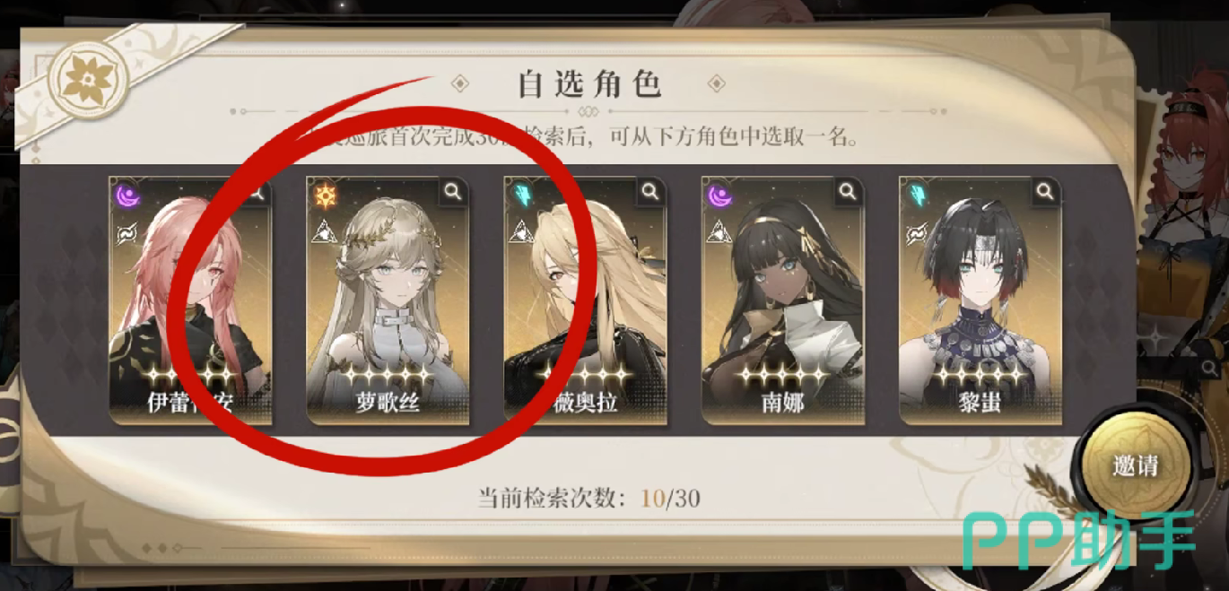 另外玩家需要注意30抽自选,所获得的角色其实跟抽卡系统有一定的区别,常规的抽卡它需要消耗抽卡券或者玩家直接付费,并且选择的结果是随机的。30抽这个其实作为奖励玩,家可以选择目标角色,此时并不需要抽卡。
