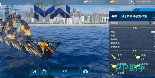 玩家第3个那自然就应该选择 CG-73,有7个防空槽,还有两个主炮槽以及4个导弹槽,除此之外,还有4个自动泡槽以及一个直升机槽。