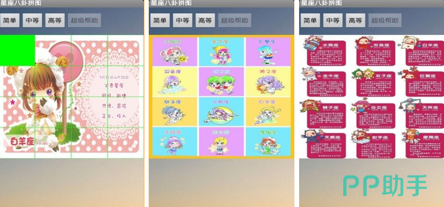 这是一款极其容易上手的星座拼图手游,玩家既可以享受拼图带来的逻辑性快乐,也可以了解更多的星座知识点。星座的打造采用了十分漂亮的卡通画方式,让玩家拥有最愉悦的拼图体验。系统向玩家提供了多种星座难度级别,从儿童到老年人都可以适应拼图的难度,只需轻轻拖动手指,把拼图转移到合适位置,即可成功过关。