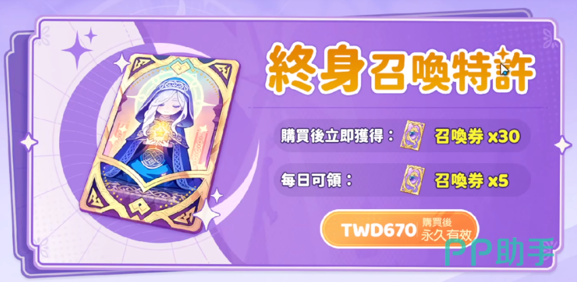 当然除了月卡之外也有终身卡,也算是一种另类的氪金方式。如果直接购买的话,就可以有了30张高级的召唤券,有更大的概率抽到限定角色,然后每天都可以领取5张召唤券。换句话说,大家一个月都可以抽取150次,几乎每个月都能抽到一个限定角色。