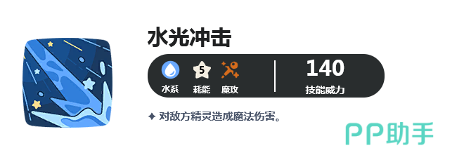 第11个水光冲击,对敌方精灵造成魔法伤害。第12个水炮,造成魔法伤害后,每次释放本技能,都会降低1点能量消耗。第13个天洪,造成魔法伤害,应对时本技能消耗降低6点。在配招方面,小编推荐大家可以选择水光冲击、天洪、涌泉和水炮这一套组合,以高魔攻输出为主。这些技能都可以造成高额魔法伤害,水炮更是可以在释放后降低自身能量消耗,更频繁使用其他高耗能的技能。