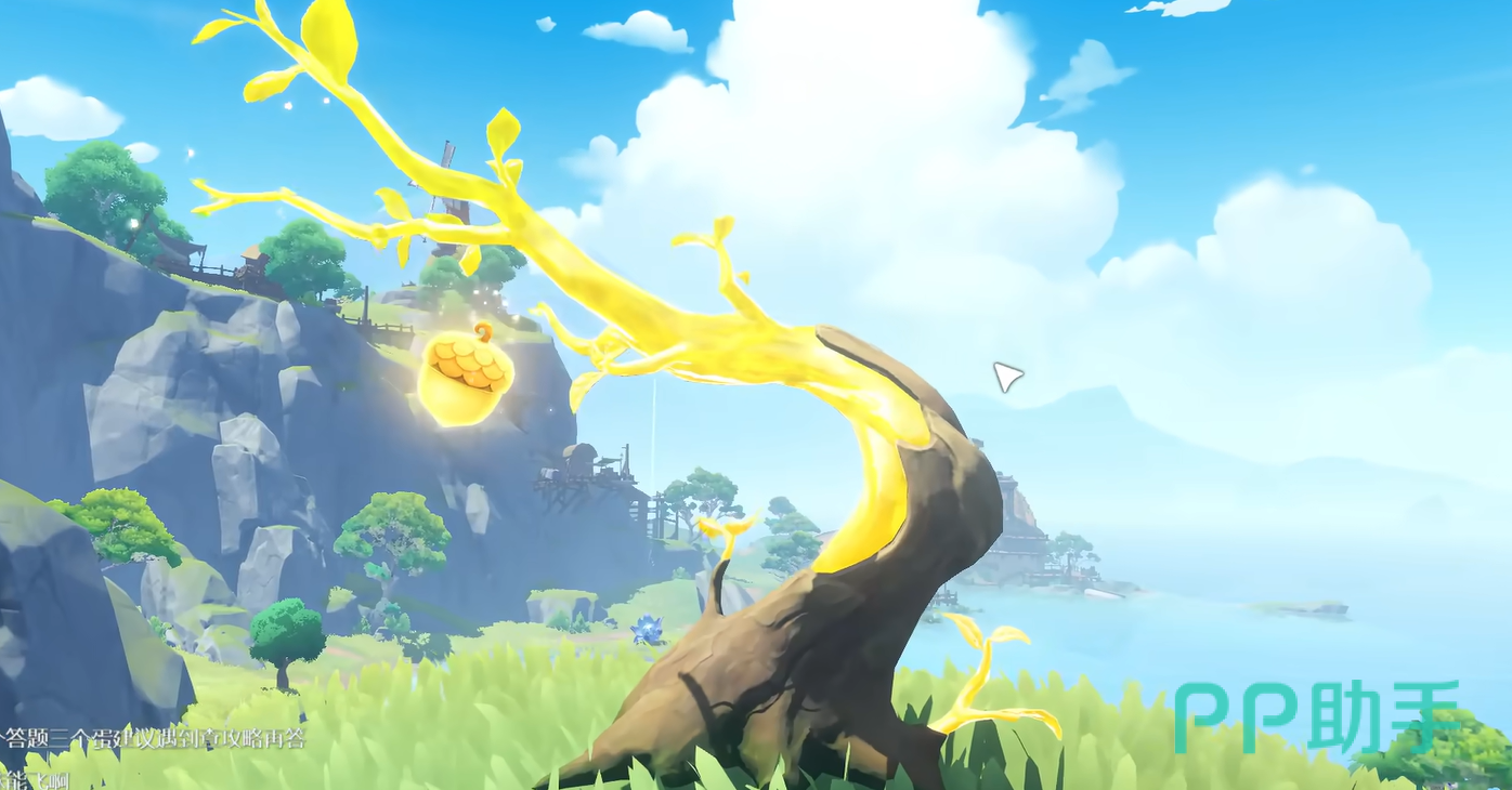要是大家对其感兴趣的话,就可以打开地图。并且找到望风半岛的魔力之源,传送到这里之后,大家就可以直接跑到右边的海边。因为这里会出现一棵树,树上就长着可以吸引深蓝鲸的果实。大家接近时,只需要靠近并唤醒就好了,接着就可以获得一颗果实。