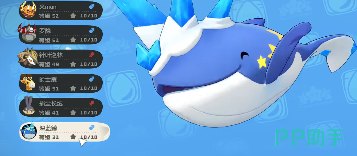 不过想要让这棵树长大的话,那就要解锁图鉴中的50个精灵,就可以成功将其唤醒。领取之后就可以在背包中查看,然后再将其随便放入一个庇护所中。放入之后,就可以在周围看到深蓝鲸了。之后在海边随便单挑一只,将其打晕之后再用精灵球捕捉就好。