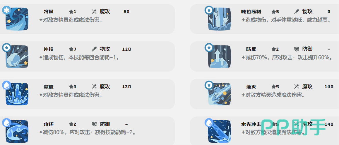 接着再推荐使用冷风,能够直接造成冰属性伤害,与水属性结合的话还可以控制对手。然后还可学习水光冲击,同样能够造成高额的魔法伤害,令人觉得恐怖如斯,至于其他的话可以根据个人需求灵活选择。